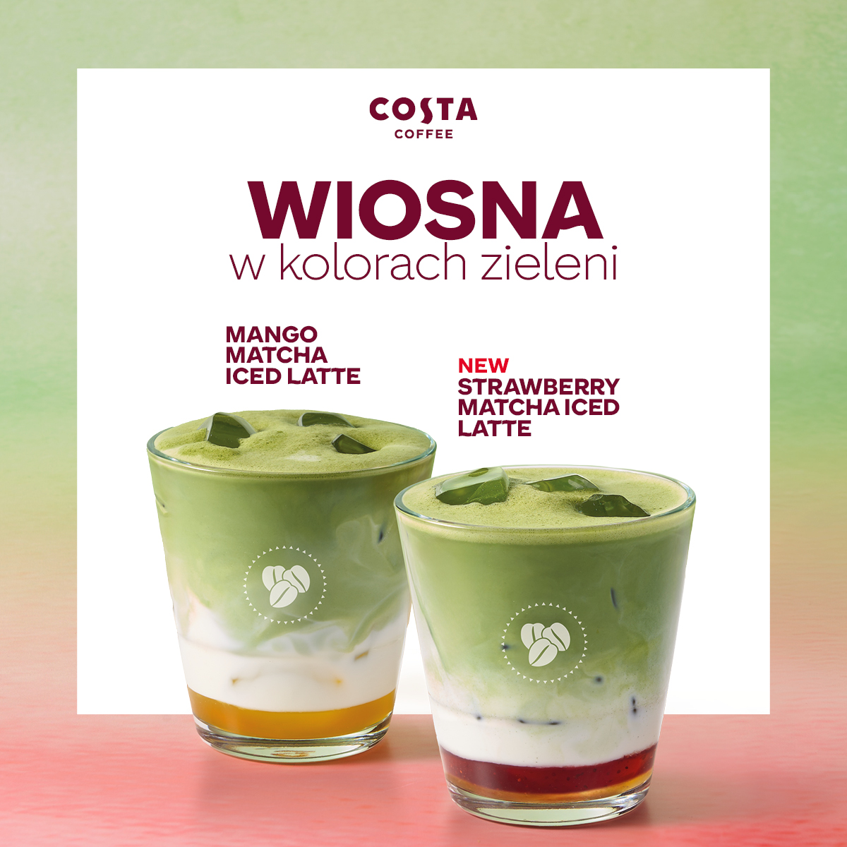 Wiosna w Costa Coffee zagościła na dobre! Spróbuj nowej Strawberry Matcha Iced Latte, która łączy japońską matchę z napojem kokosowo-sojowym Alpro i owocowym purée. Lekko, świeżo i totalnie w trendzie! A dla fanów egzotyki - Mango Matcha Iced Latte. Idealne orzeźwienie na wiosenne dni